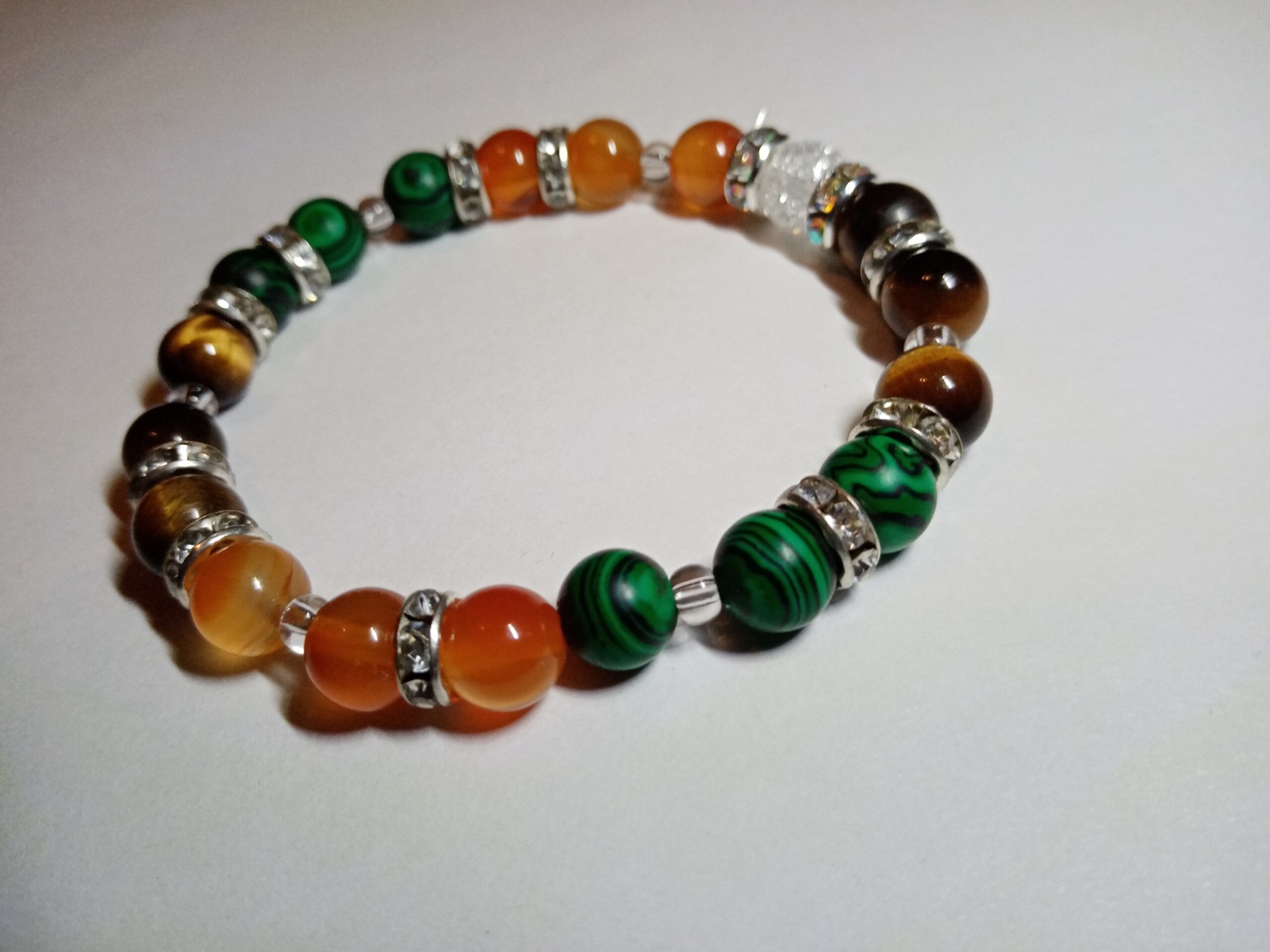 Tento náramek se vyrábí individuálně, ke každému znamení zvěrokruhu je jiný . Tento náramek je pouze vzorový a patří ke znamení Kozoroha . Všechny tyto náramky, lze vyrobit na přání ,jak na paměťovém drátku z nerezu, tak na lyckře. Všechny obsahují drahé kameny dle daného znamení, rondelky, korálky Preciosa a korálky Swarovsky.